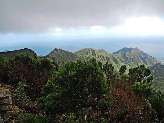 Némi lejtős rész és egy lépcsősor után megérkeztünk a Cabezo del Tejo kilátóhoz. Innét állítólag nagyon szép kilátás nyílik a Taganana, Benijo, El Draguillo völgyekre és egy szép napsütéses napon még a Teide is látható. A kilátó nevét egy fáról kapta /Erica platycodon - spanyolul "tejo"/, mely bőségesen előfordul itt.